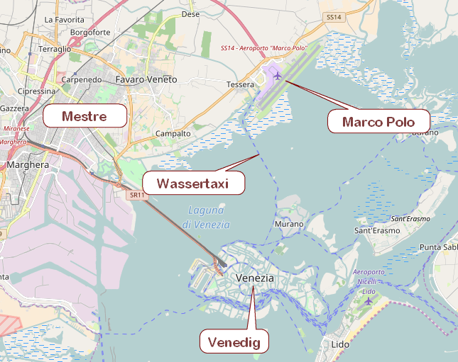 Zum Transfer in Ihr Hotel nach Venedig stehen Ihnen mehrere Möglichkeiten zur Verfügung. Diese werden Ihnen hier in Wort und Bild erklärt.