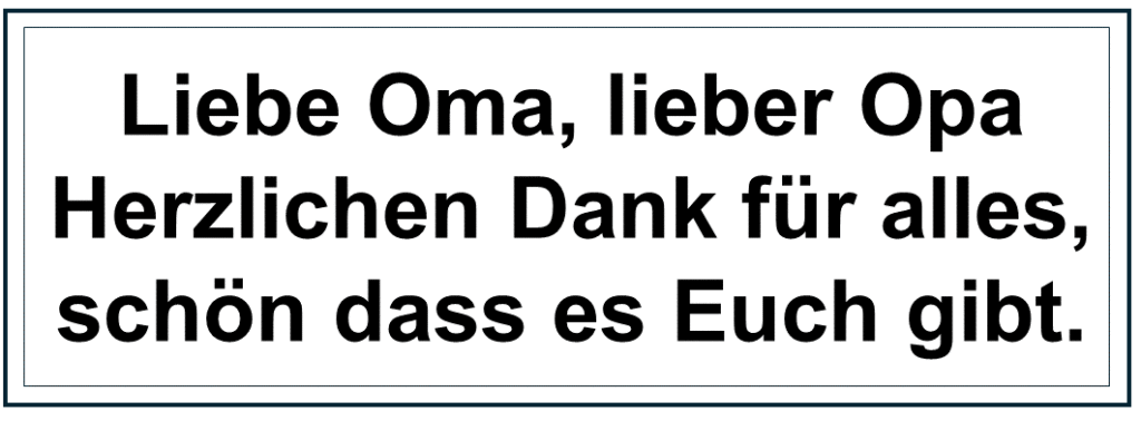 Dort entfaltet sich plötzlich ein großes Transparent mit Ihrer ganz persönlichen Botschaft: „Liebe Oma, lieber Opa. Herzlichen Dank für alles. Schön, dass es euch gibt.“