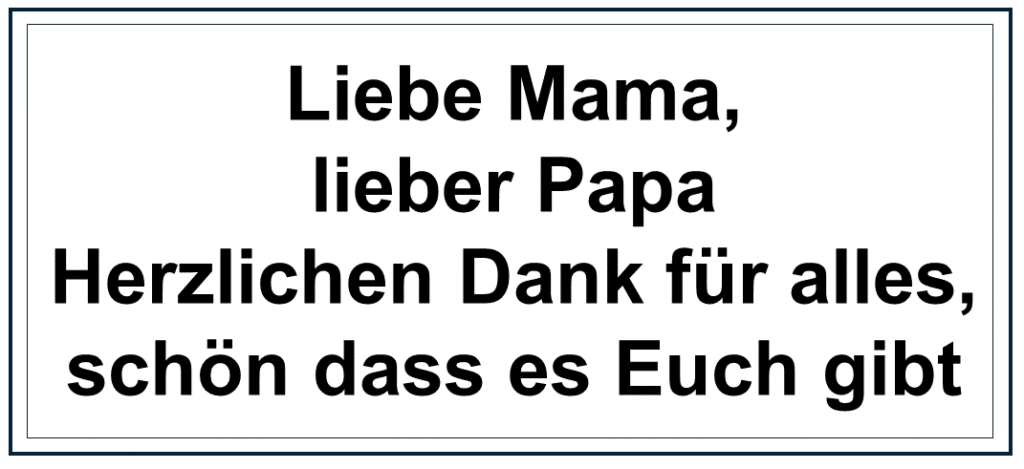 Dort entfaltet sich plötzlich ein großes Transparent mit Ihrer ganz persönlichen Botschaft: „Liebe Mama, lieber Papa – Herzlichen Dank für alles. Schön, dass es euch gibt.“
