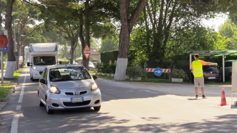 Sie werden es selbst erleben: Wenn Sie mit Ihrem Auto in Punta Sabbioni ankommen und einen Parkplatz suchen, sehen Sie mehrere Menschen mit Sicherheitswesten, auf der Straße stehen und wild und hektisch in Richtung der Parkplatz Einfahrt winken.