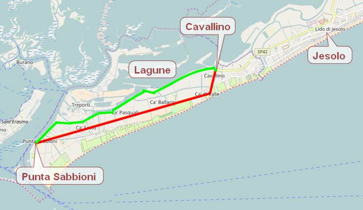 Bei Ihrer Anreise nach Punta Sabbioni gibt es ab Cavallino zwei verschieden Routen.