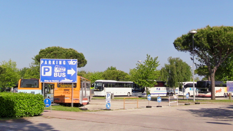 Der erste Parkplatz den Sie bei Ihrer Ankunft in Punta Sabbioni sehen werden, ist ein Omnibus Parkplatz. Er befindet sich noch vor dem Kreisverkehr auf der rechten Seite. Das Schild am Busparkplatz weist einen Betrag von 25,00 Euro für das ganztägige Parken aus. Ab 14 Uhr kostet es 18,00 Euro. 20 Minuten Halten zum Be- und Entladen kostet 7,00 Euro.