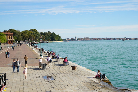 Ein Spaziergang in Richtung Markusplatz hat einen entscheidenden Vorteil: Wenn Sie in Sant’Elena starten und langsam zurückgehen, haben Sie die besten Motive und das Panorama immer direkt vor Augen. Würden Sie am Markusplatz starten, läge die prachtvolle Kulisse ständig in Ihrem Rücken.