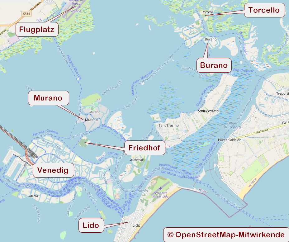 Die Inseln Lido, Murano, Burano und Torcello im Plan