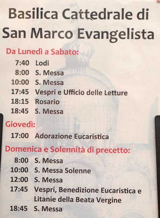 - Musik für die Seele: Oft spielt die imposante Kirchenorgel, und es werden Kirchenlieder gesungen. Die italienische Sprache macht die Liturgie – die Parola di Dio (das Wort Gottes) – fast zu einem Gesang.