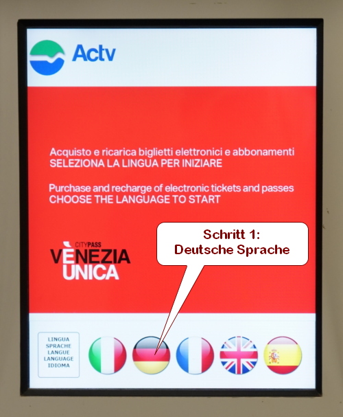 - Ticket ausdrucken: In Venedig gehen Sie zu einem der gelben ACTV-Ticketautomaten.