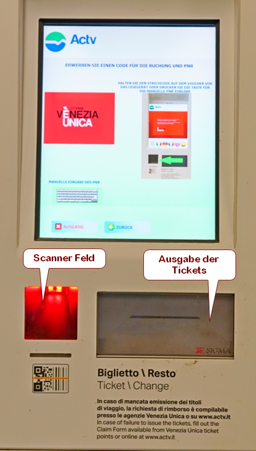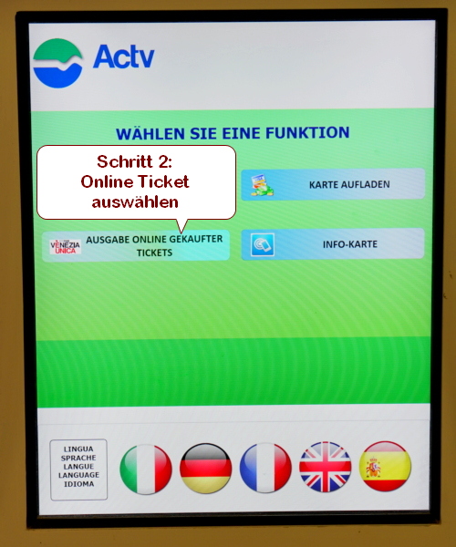 - Der Ticket Automat für online Tickets ist frei. Das werden Sie selbst immer wieder an allen ACTV Zahlstellen in Venedig erleben.