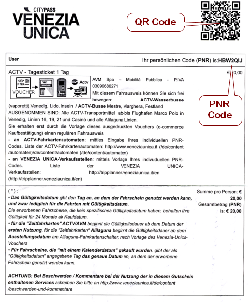 Sie erhalten per eMail einen online Ticket Gutschein, dessen QR Code Sie vor Ort an den Scanner halten und der Automat druckt Ihnen das Ticket aus. Für den Fall, das Sie mehrere Tickets bestellen, bekommen Sie trotzdem nur einen PNR Code. Der Automat druckt Ihnen dann auf jeden Fall so viele Tickets aus wie Sie bestellt haben. In der Mail ist natürlich auch die Buchstaben Zahlenkombination als sogenannter PNR Code. Beide Varianten sind gelichwertig.