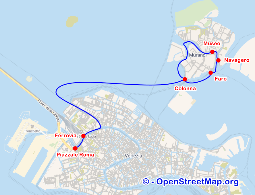 MarkusplatzPiazzale RomaBahnhof (Ferrovia)Parkinsel TronchettoRialtobrückeLidoMuranoBuranoPunta Sabbioni