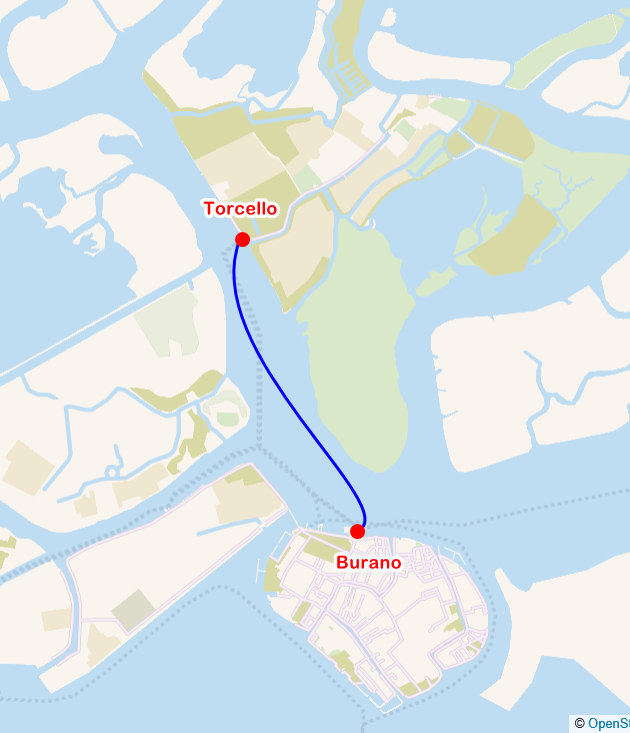 Dauer der Fahrt: Von Burano nach Torcello: 5 Minuten.